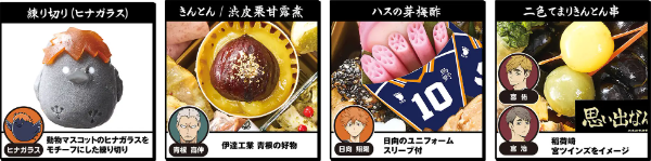 キャラごとの好物や名産を詰め込んだ三段重とか、考えただけでワクワクする!しかもバレーボール型グミや練り切りのヒナガラスまで…遊び心満点。オリジナル重箱や風呂敷も運動会とかで使えちゃうね!