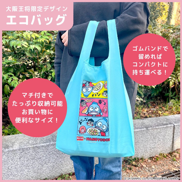 ハンギョドン×大阪王将コラボ! 通販限定コラボ福袋の第3弾が発売。販売期間は2024年2月まで!大阪王将の人気中華総菜とオリジナルデザインのエコバッグとのセット!ハンギョドンカラーのかわいいエコバッグです♡