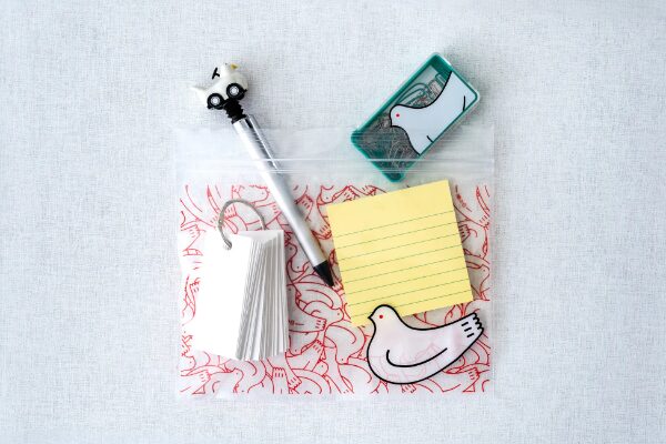 | 内容 | ・袋留めクリップ(赤・白 各1本)・ジッパーバッグ(B6サイズ2枚・A7サイズ2枚) |