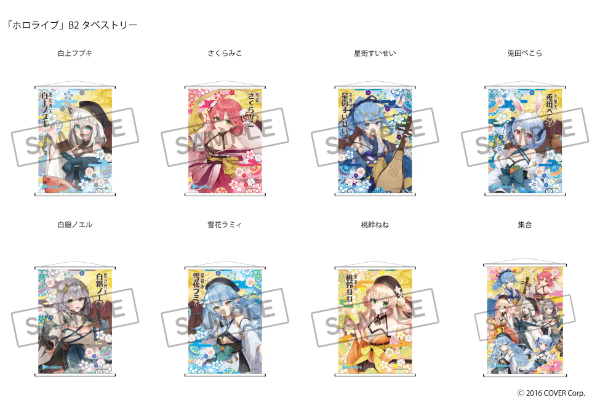 | 「ホロライブ」B2タペストリー 白上フブキ/さくらみこ/星街すいせい/兎田ぺこら/白銀ノエル/雪花ラミィ/桃鈴ねね/集合 | 880円 |