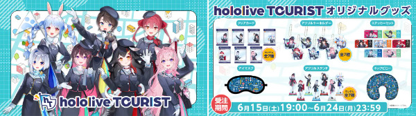 旅の思い出を彩るバスガイド姿7人のhololive TOURISTグッズも受注販売されます。受付期間は6月15日(土)19:00から6月24日(月)23:59までとなっていますのでお見逃しなく!
