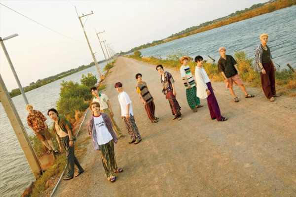 6月30日のリリースでは、まっすぐな道を背に11人のメンバーが佇むスタイリッシュな1枚が公開されています。カジュアルでリラックスした雰囲気ながら、まっすぐ伸びる背景の道とメンバーの姿が凛々しさを感じさせるショット。