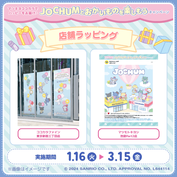 限定店舗でJOCHUMたちのかわいいラッピング装飾が見られます。1月16日から3月15日まで買い物もジェオチャムたちと一緒♪