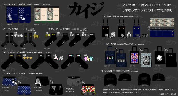 ・『カイジ』のオリジナルグッズがしまむらオンラインストア限定で発売決定。