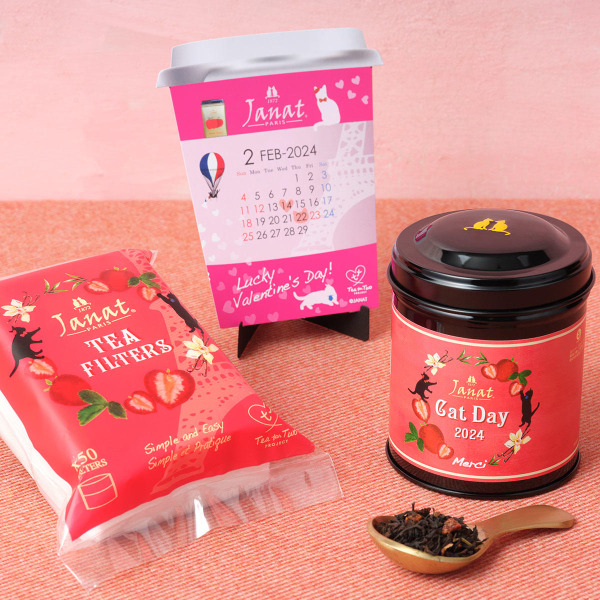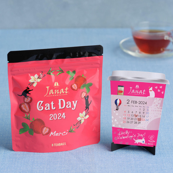 | 内容 | ・オリジナル ネコの日バッグ ・オリジナル ニャッフル(2枚入) ・オリジナル 紅茶のチョコレート(個包装6個入) ・ジャンナッツ メルシー(ティーバッグ8個入) ・ジャンナッツ カレンダー(1個) ・オリジナル ネコプレート |