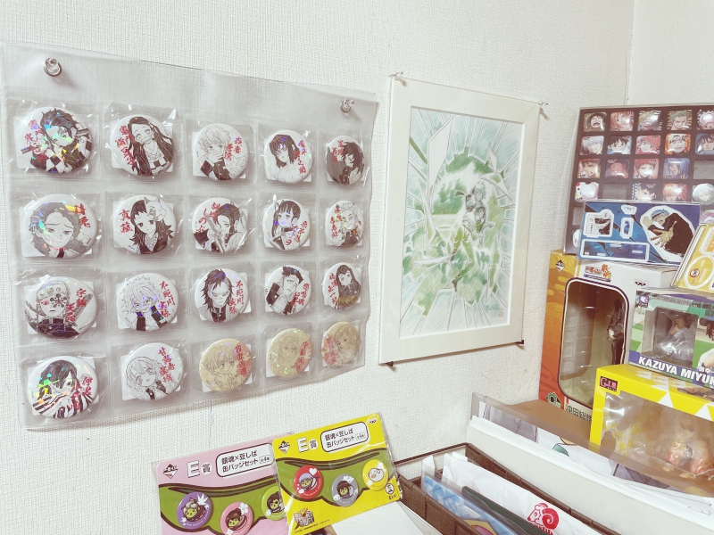 バッジの大きさや形で揃えたり…キャラクターが勢ぞろいした様子は圧巻なんですよね~。缶バッジコレクションは推し活の醍醐味ともいえます。