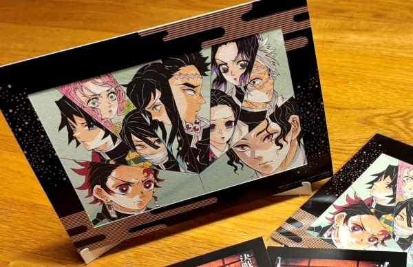 | 配布物 | 原作者・吾峠呼世晴イラスト 特製アートスタンド(A5サイズ)非売品ポスターデザインカード(全6種・ランダム) |