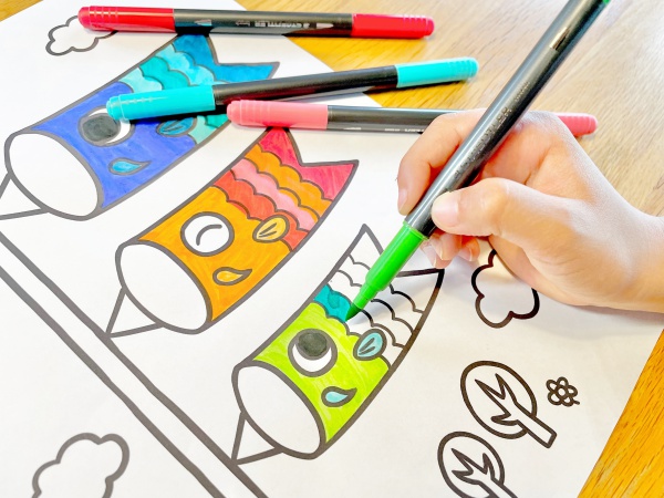 かわいい鯉のぼりぬりえで、5月こどもの日を楽しみましょう♪