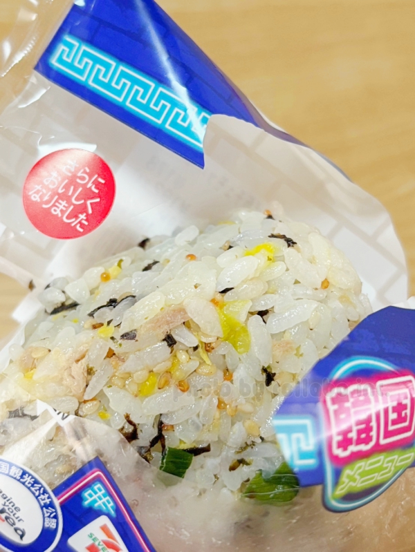 セブンイレブンの韓国メニュー「ごま油香6種具材混ぜ飯チュモッパ」を食べて見ました♪おにぎりは手軽に現地の味が楽しめていいですよね♪