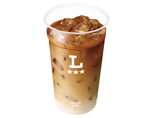 - コーヒーマシンで「アイスカフェラテ・メガ」を選択し、注ぐ。