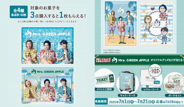 【ローソン×ミセス】2025年コラボ!ビジュアルシート配布、サンドイッチなど登場♪アプリでMrs. GREEN APPLEグッズ抽選も