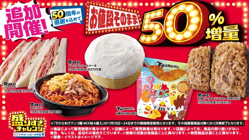 ・11月18日から2週間、50%増量の“盛りすぎ”商品が登場