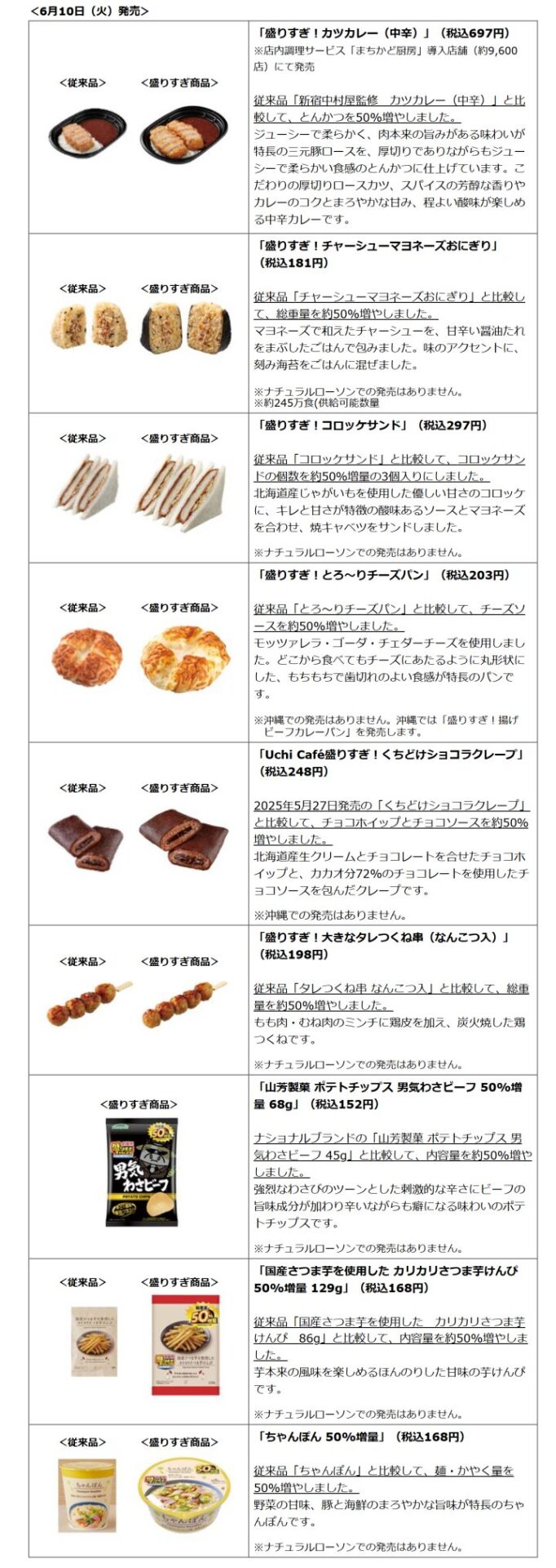ローソン盛りすぎ増量50%!2025年6月10日発売商品一覧