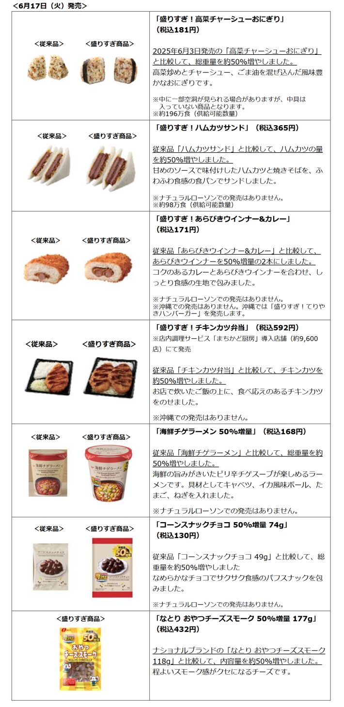 ローソン盛りすぎ増量50%!2025年6月24日発売商品一覧