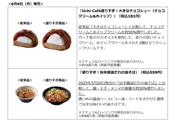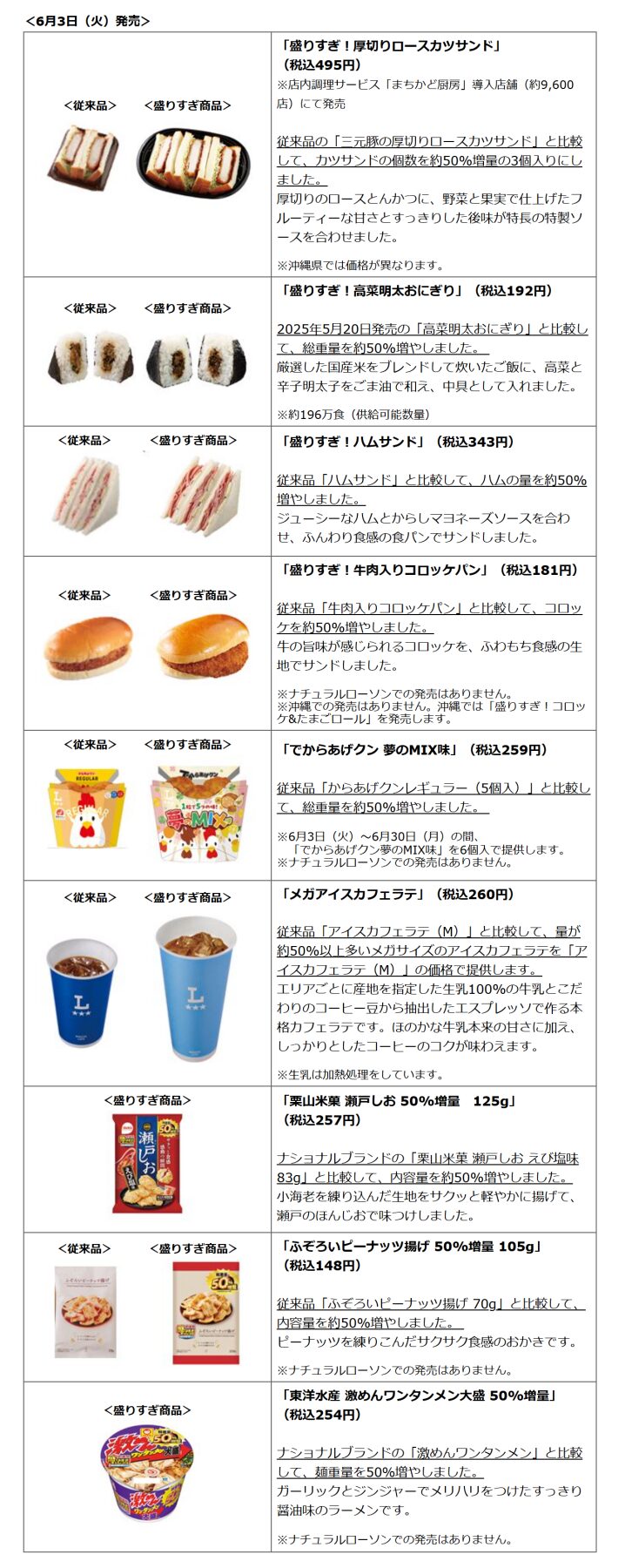 ローソン盛りすぎ増量50%!2025年6月9日発売商品一覧