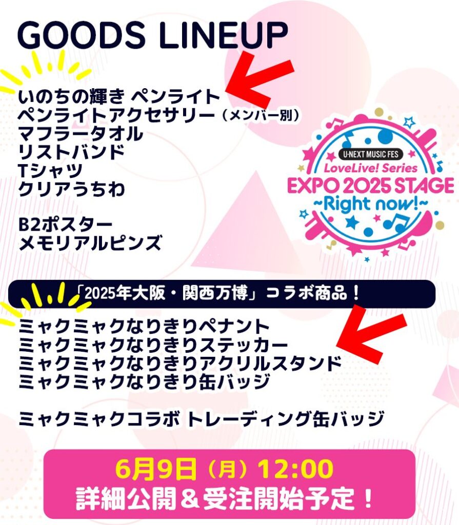 この万博でラブライブ!が見られるの、リアルに世界レベルの奇跡なん!? ペンライト、メモリアルピンズも絶対コレクション入り。ミャクミャクなりきりの缶バも欲しすぎる!