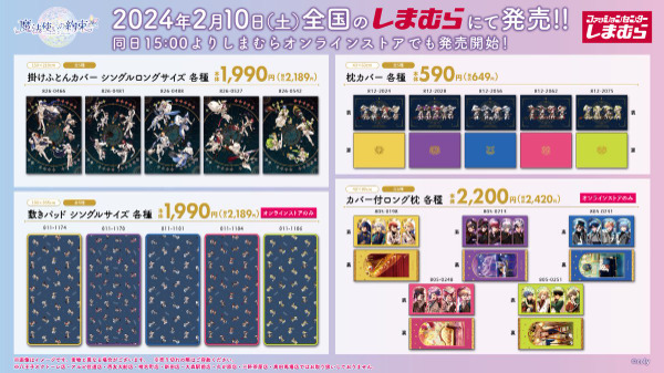 大人気ゲーム魔法使いの約束がしまむらとコラボ!揃えるとゲームの世界に浸れること間違いなしの掛けふとんカバーや枕カバーなどの寝具類、キャラクターを抱き抱えられるダイカットクッションなど豪華なラインナップ♡その他にもインテリアマットなど部屋の模様替えにも最適です!オンラインストアでも取扱いがあり、WEB限定の商品もあるのでお見逃しなく♪