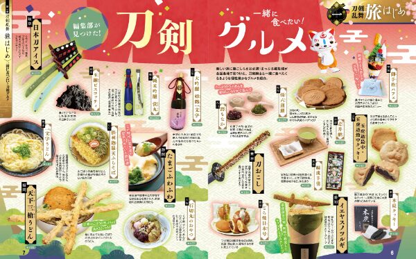 巻頭企画「刀剣乱舞 旅はじめ」では、遠征で役立つ刀剣乱舞ONLINEの機能紹介から、旅先で出会える刀剣男士インデックス、編集部おすすめの刀剣グルメや関連アイテム、さらには刀剣鑑賞の基本まで充実。読み進めるだけで旅気分が高まります。