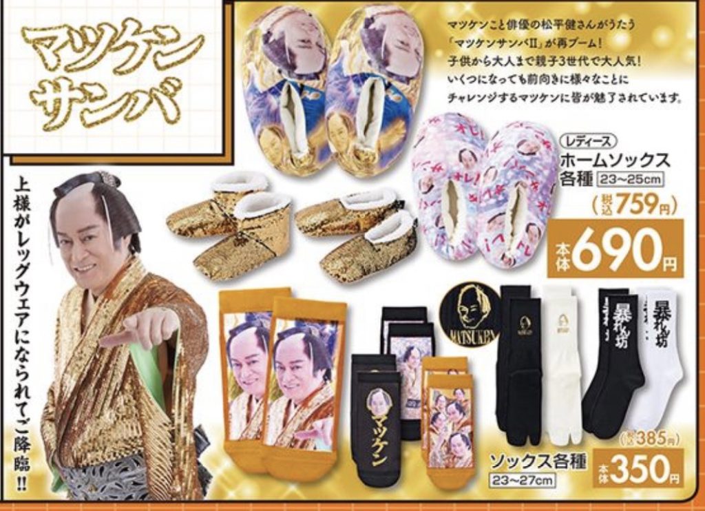 ハデハデなマツケンサンバルームソックス出しちゃうしまむらすごいな。暴れん坊ソックスいいよ。