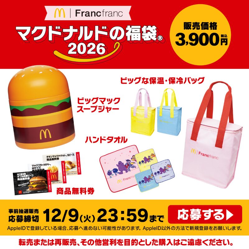 ・Francfranc×マクドナルドの福袋が事前抽選で登場