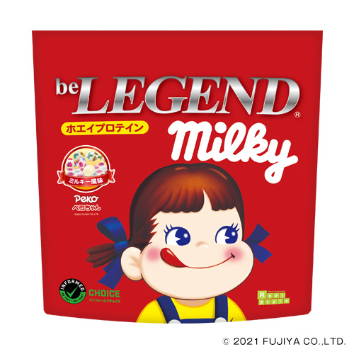 ミルキー×プロテイン「ビーレジェンド 」コラボ!ペコちゃん(ミルキー味)・ポコちゃん(ココア味)の2種類をラインナップ。1食で20g以上のたんぱく質が摂取できる!甘くて美味しいおなじみの味だから飲みやすい♪