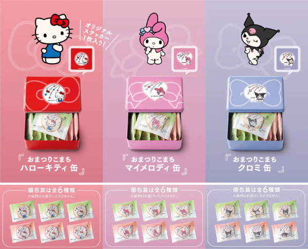 | 商品名 | 「おまつりこまち ハローキティ 缶」「おまつりこまち マイメロディ 缶」「おまつりこまち クロミ 缶」 |