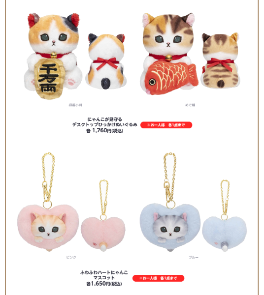 | ふわふわハートにゃんこマスコット (全2種) | 1,650円 |
