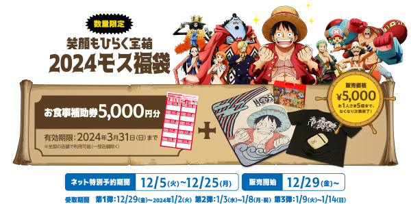 「モス福袋2024」予約12/5~!ワンピースコラボ♪中身はグッズ&お食事補助券入り