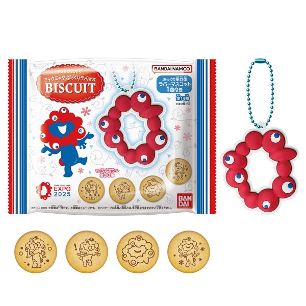 EXPO2025ミャクミャクの公式 食玩(おまけ付お菓子)、バンダイ「ぷっくりラバマスビスケット」がコンビニやスーパーなど全国のお菓子売り場に登場🎉ラバーマスコットはボールチェーン付きで全14種の表情・仕草がラインナップ✨ビスケットにもかわいいプリントが施された公式ライセンス商品です。Q.どこで売ってる? A.販売店は、コンビニやスーパーなど全国の量販店などお菓子売り場、オンライン通販でも取扱い Q.いつからいつまで? A.2025年8月25日~