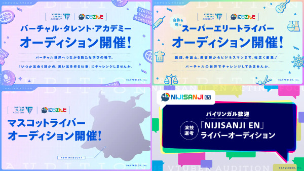 「バーチャルタレントアカデミー(VTA)」では通常のオーディションの他に、高難易度の資格や専門知識を持ったスーパーエリートライバーとマスコットライバーの3つのオーディションの同時開催となっています。
