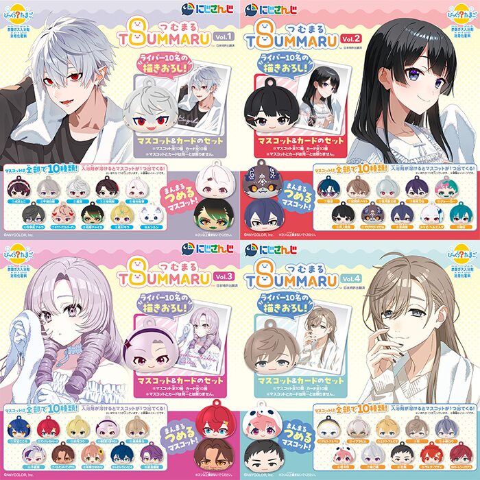 人気バスボール「びっくらたまご」シリーズから、にじさんじのライバーたちが登場する「つむまる にじさんじvol.1/vol.2」が2025年12月に発売されます。マスコットは顔型デザインで、底面と上部の穴を組み合わせて“積む”ことができる仕様。ボールチェーンを通せば持ち運びも可能です。さらに今回は、ライバーたちのお風呂上がりビジュアルを使用した限定カードも付属。1袋にマスコットまたはカードがランダムで1つ入っており、どの組み合わせが出るかは開けてからのお楽しみ。コレクション性とかわいさを兼ね備えた、ファン必携のアイテムです。