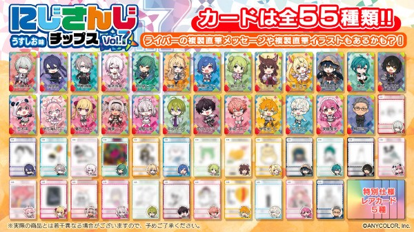 「にじさんじチップス7」取扱い店舗はファミマ、ヴィレヴァン、アニメイト等カード全55種類(レア5種)