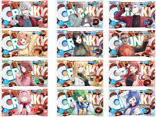 ロッテの人気商品「クランキー」とのコラボが実現!2023年発売の「にじさんじクランキーチョコレート」「にじさんじクランキーポップジョイ」は、ライバーをイメージしたデザインパッケージ。