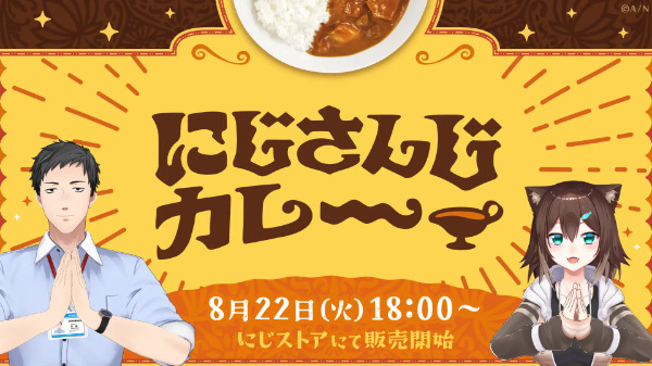 にじさんじから、カレーをテーマとした新グッズが登場!ラインナップは、レトルトカレー、ミニアクリルスタンド、カレー皿&スプーンセットの3種類。文野環、社築の2人がグッズに♪