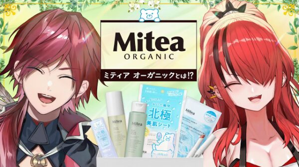 にじさんじの人気ライバー「ローレン・イロアス」と「レイン・パターソン」が、Mitea ORGANIC(ミティア オーガニック)と夢のコラボを実現!ファミマやCosme Kitchenで購入&応募すれば、描きおろし壁紙や可愛いステッカーがもらえちゃうよ♪