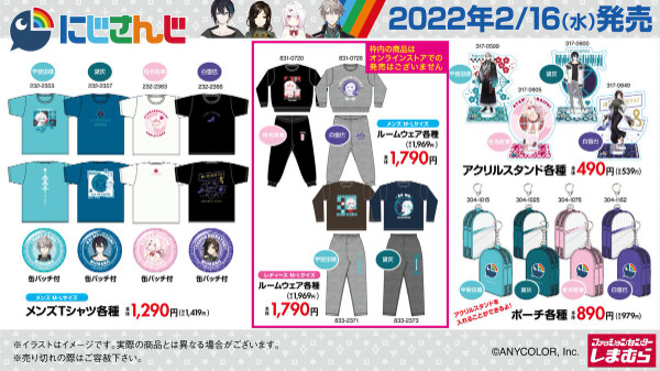 「にじさんじ×しまむらグッズ第3弾」2022年2月16日発売