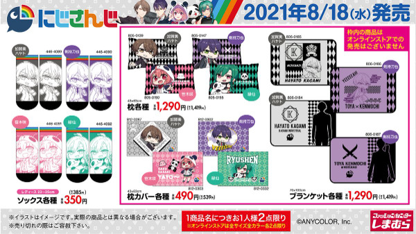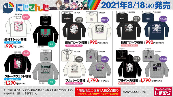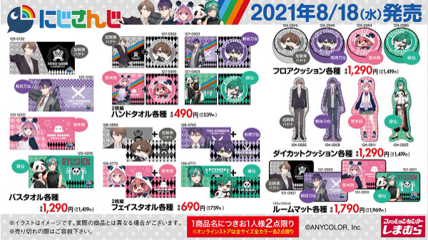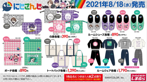 「にじさんじ×しまむらグッズ第1弾」2021年8月18日発売