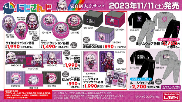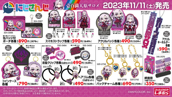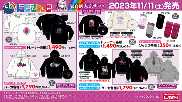 「にじさんじ×しまむらグッズ第7弾」2023年11月11日発売!壱百満天原サロメ、ソロコラボ!