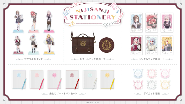 にじさんじ文房具・ステーショナリーグッズ発売!ノート&ペン、付箋、スクールバッグ風ポーチなど登場
