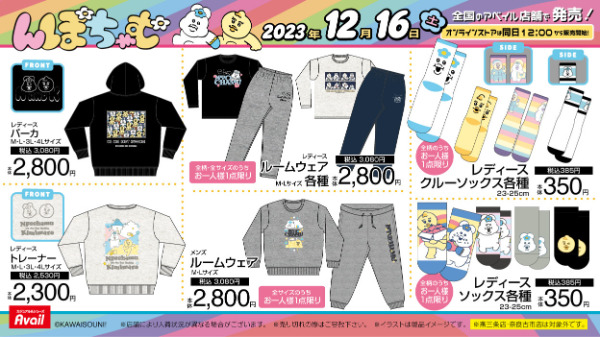 んぽちゃむ×アベイル(しまむらGR)コラボグッズ!発売日2023年12月