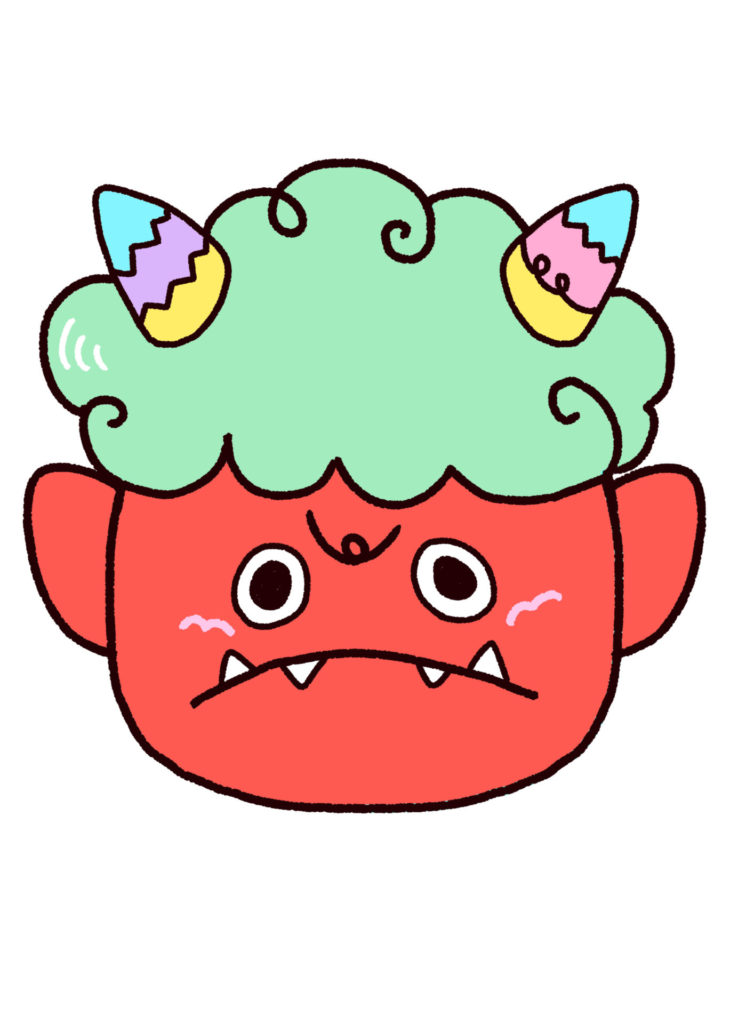 子供の時から「もっと可愛い鬼のお面があればいいのに!」と思っていたので、小さなお子さんも怖がらずに可愛いと言ってもらえるような鬼にしました。