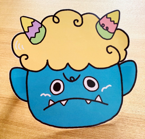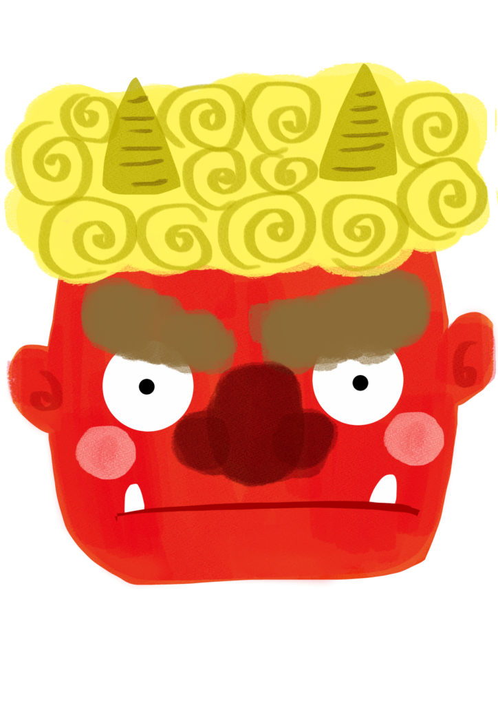 『かわいい鬼のお面イラスト無料ダウンロード配布』手作りOK!こどもが泣かない優しいイラストを描いてもらったよ
