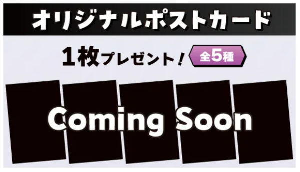| 注文特典として、コラボメニューを1品注文すると、オリジナルのポストカード全5種類の中から、ランダムで1枚プレゼント! ※ポストカードの絵柄は続報を楽しみにしてください。 ※ポストカードの絵柄は選ぶことが出来ません。 ※なくなり次第終了です。 |
