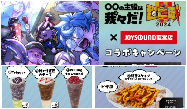 「JOYSOUND」の直営店で「〇〇の主役は我々だ!」とのコラボキャンペーンが開催されます♪オリジナルのポストカードが付いてくるコラボのメニューも発売されますよ!さらにオリジナルのグッズ発売も♪対象店舗公開!