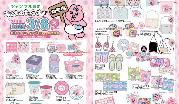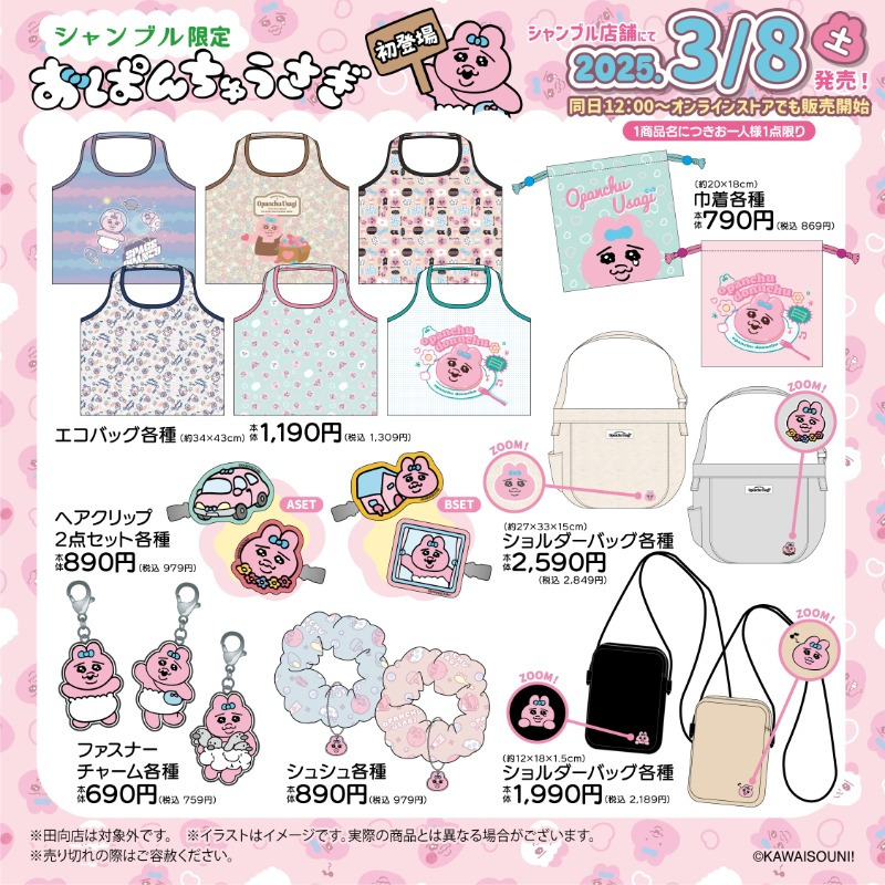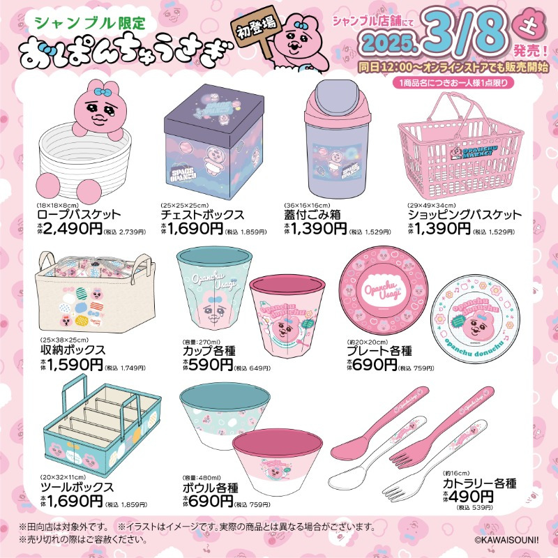 2025年3月8日より、おぱんちゅうさぎとシャンブルのコラボレーションアイテムが販売されます。今回のコラボでは、普段使いしやすい実用的なアイテムが多く展開!