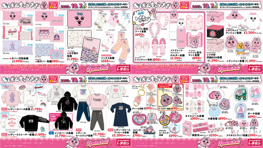 >「おぱんちゅうさぎ」しまむらグッズ詳細