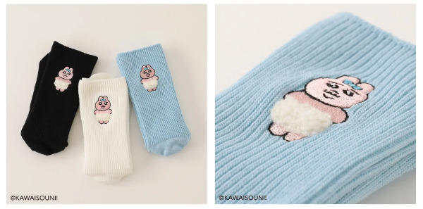 靴下屋コラボのおぱんちゅうさぎかわいすぎる!刺繍も可愛いし、おぱんちゅがモコモコしてるのいいな。シンプルなリブソックスは普通にさりげなく履きたい。さすが靴下屋さんセンス良きですね。