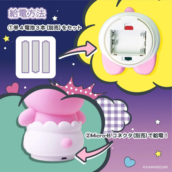 オパンチュウサギの新商品「おぱんちゅうさぎシリコンライト」はポンと叩くと3段階に光量調整ができるなんとも可愛い照明です。給電方法は単4電池3本別売りをセットするか、Micro-Bコネクタでの充電が可能。好きな場所に光るおぱんちゅを飾って楽しもう♪