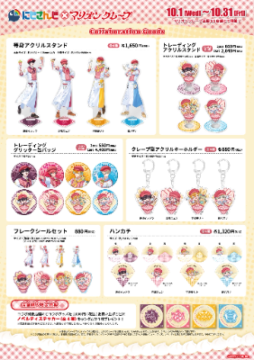 | 限定グッズ | 等身アクリルスタンド、トレーディングアクリルスタンド、グリッター缶バッジ、クレープ型アクキー、フレークシール、ハンカチ など |