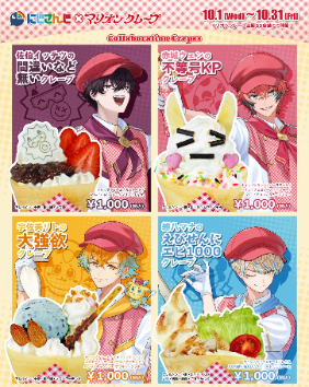 オリエンス×マリオンクレープコラボ!グッズ展開♡佐伯イッテツ/赤城ウェン/宇佐美リト/緋八マナが考案メニュー🎵